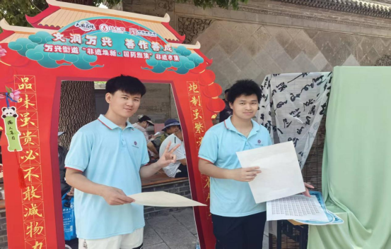 6月6日,“文润万兴 善作善成——万兴街‘非遗焕新·国药雅集’”非遗市集活动在庄王府中轴线广场及配殿空地举行。beat365英国官方网站工业与信息化系的文化志愿者参与其中,通过非遗技艺体验、文化讲解等形式,助力传统文化传承。