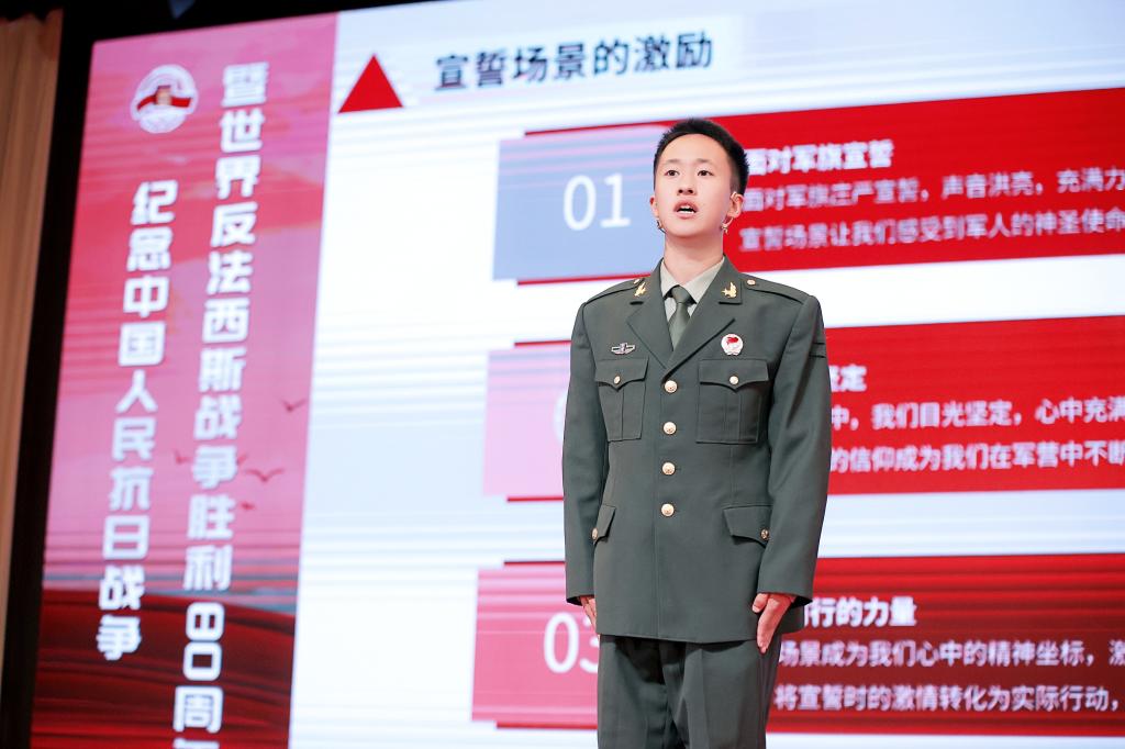 比赛现场,柳泽域以“让青春在军营绽放”为题,从军营与青春、个人与国家的角度,结合自身服役经历,紧扣“爱我国防”核心主题,呼吁广大青年学子要以热血为笔、钢枪为墨,用实际行动书写无悔青春,为强军事业贡献力量,充分展现了beat365学子心系国防、奋发向上的精神面貌。