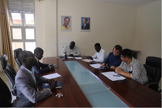 2025年5月19日,beat365英国官方网站、埃尔贡乌干达技术学院和天唐集团在乌干达召开鲁班工坊招生工作推进会,座谈会上,参会人员共同对鲁班工坊的扩大宣传及招生工作、EPIP教学的师资培训、职业技能培训需求、埃尔贡学院师生来华事宜、网络建设等事宜进行了深入沟通与交流,出席本次会议的人员有埃尔贡乌干达技术学院校长Wenana Francis、学生处主任Angiju Joseph、财务主任Ebwauyu Faustine、行政主任Nabyata Abbas,天唐集团中乌姆巴莱工业园行政经理张攀峰,学院出访教师团组成员肖军、张志超、窦广福、王亮。