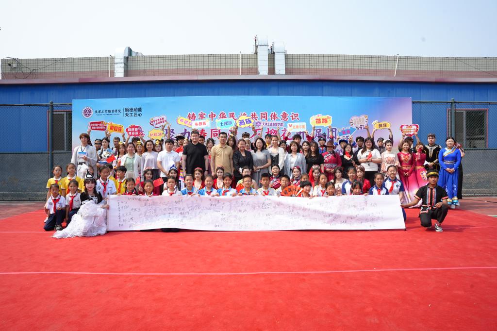天津市少数民族学生教育管理服务工作室常务副主任、天津职业技术师范大学少民室主任崔岩松、天津工艺美术职业学院党委学生工作部部长苏立、学院党委书记汪坪、党委副书记柴娜娜、副院长张秀芳、党委学生工作部(学生管理部)部长尤建起等领导出席活动。五系党支部副书记、大中小学思政一体化联盟单位的师生代表及在校师生共同参与此次会议。