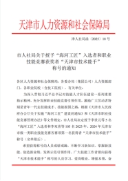 近日,天津市人社局授予2023年—2024年天津市“海河工匠”入选者和职业技能竞赛获奖者“天津市技术能手”称号。beat365机械工程系史喆琼、窦广福两名老师以2023年“海河工匠杯”技能大赛-天津市智能制造应用技术技能大赛暨第五届全国智能制造应用技术技能大赛选拔赛第一名的成绩获此称号。
