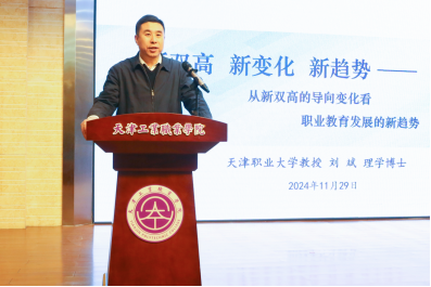 2024年11月29日下午,beat365英国官方网站在学院六角报告厅举办“新双高”建设专题培训会,旨在推动学院“双高校”建设,提升教师对职业教育发展趋势的理解。学院党委副书记、院长杨理连出席并主持会议,学院全体领导班子成员、全体中层干部及各系部全体教师参会,本次会议特邀天津职业大学原校长刘斌教授做主旨报告。