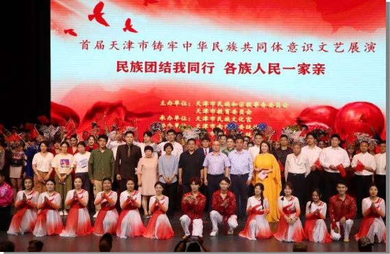 为深入贯彻落实习近平总书记关于加强和改进民族工作的重要思想,铸牢中华民族共同体意识,推动新时代党的民族工作高质量发展,6月20日,由天津市民族和宗教事务委员会、天津市教育委员会主办,天津市民族文化宫承办,天津市南开区委统战部、天津市红桥区委统战部协办的“首届天津市铸牢中华民族共同体意识文艺展演——民族团结我同行,各族人民一家亲”专场演出在市民族文化宫成功举行。市民族宗教委党组成员、二级巡视员董玉文,市民族宗教委民族二处处长穆怀寅,市民族文化宫党支部书记、主任李光出席活动。