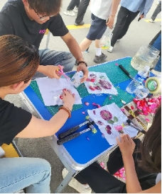 活动现场精心设置了多个互动体验摊位,师生们可以在这里自由参与和体验各种传统文化项目。活动涵盖了团扇绘制、脸谱绘画、剪纸艺术、植物拓染、写意书法、干花书签等6个方面,可以让参与者全方位领略中华文化的博大精深。