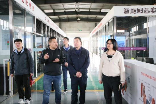 会后特变电工领导参观了学院机械工程系机器人实训室、数控加工实训中心,工业与信息化系实训室和经济管理工程系实训室。