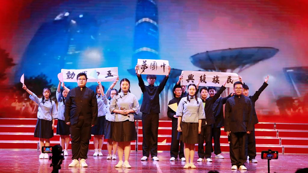 整场演出在《没有共产党就没有新中国》的歌声中落下帷幕,旋律响起,全体起立,高声齐唱,唱响青春理想,祝福伟大祖国。 在激情澎湃的歌声中,师生共同重温百年峥嵘岁月,致敬百年光辉历程,为建党百年华诞献上青春贺礼。嘹亮歌声唱响红色经典,激昂初心启航新征程!