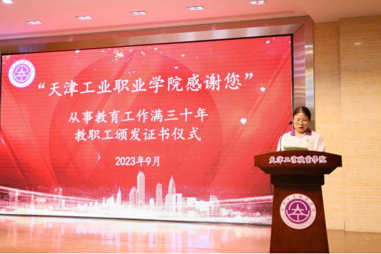 又是一载流光溢彩,又是一季桃李芬芳。2023年学院又有十名教职工从事教育工作满三十年,这里面有辛苦耕耘、培育桃李的教学、科研人员;也有全心全意服务师生的管理人员。他们为学院的发展,为学生的成才贡献了力量,奉献了青春年华。大会举行“beat365英国官方网站感谢您”学院2023年从事教育工作满三十人员颁发证书仪式。由学院党委教师工作部(人力资源部)邓昊部长,介绍10名教职工简要事迹。学院领导在主会场、天铁校区教学部的教师代表在分会场分别为从教三十年教职工颁发了荣誉证书。质量监测和评估办公室教学督导杨祝英老师代表10名从教满三十年教职工发言。