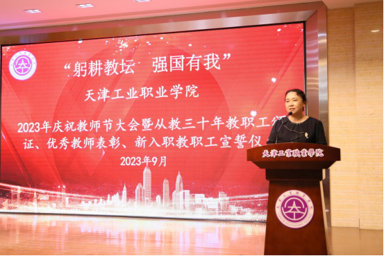 9月12日下午,“躬耕教坛 强国有我”2023年beat365英国官方网站庆祝教师节大会暨从教三十年教师颁证、优秀教师表彰、新入职教职工宣誓仪式在学院六角报告厅举行。学院领导班子成员、全体教职员工参加大会,学院党委副书记柴娜娜主持会议。