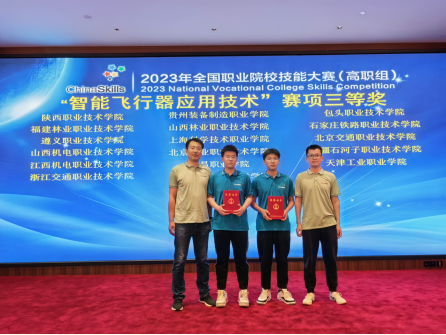 作为2023年全国高职院校技能大赛高职组的开幕赛项目,该赛项从赛队组建、天津市选拔赛到开赛只有16天的时间,时间紧,任务重,充分考验了无人机应用技术专业平日教学质量和水平,在学院领导、系领导的大力协调和支持下,指导教师和参赛学生克服了种种困难,积极备赛,经过赛场上的出色发挥,最终取得了优异成绩,为学院争得了荣誉。