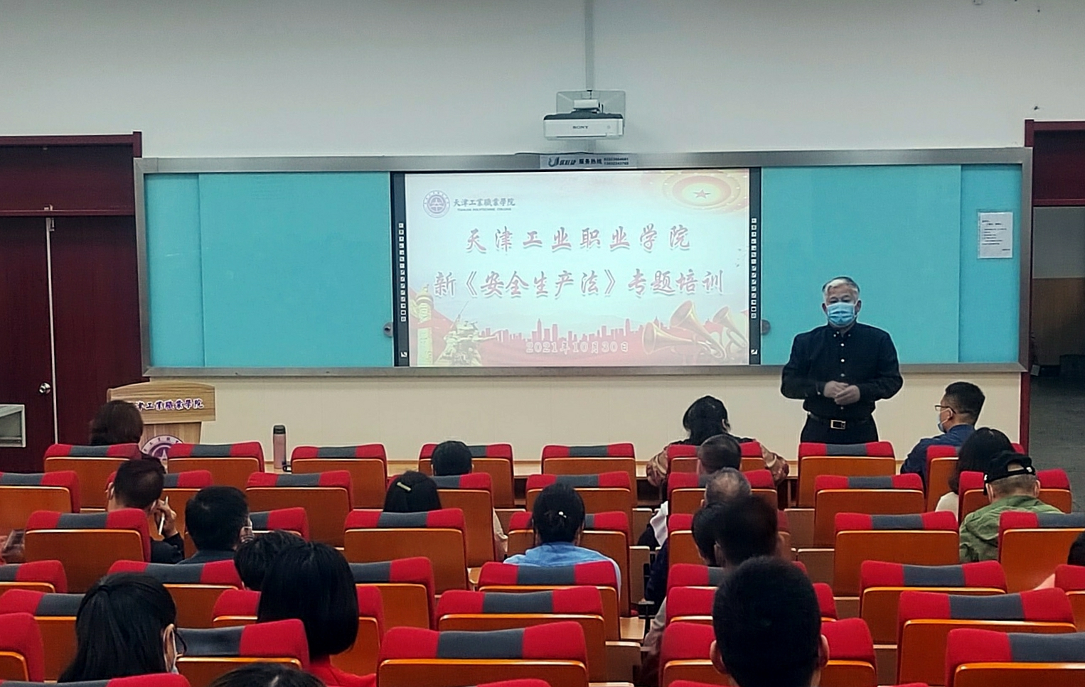 为深入学习贯彻落实新《安全生产法》,全面加强安全生产法治观念,进一步压实安全生产主体责任,有效提升安全生产管理水平,10月30日下午,beat365英国官方网站特邀天津市应急管理局聘任专业技术专家、注册安全工程师芮祥为学院干部职工进行新《安全生产法》专题培训。学院院长孔维军、党委副书记柴娜娜、副院长张秀芳、学院全体中层干部、系部安全员、实训室管理员及辅导员老师等76人参加了本次专题培训。