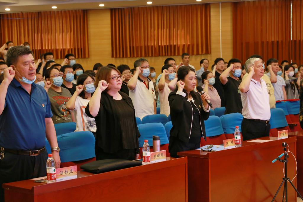 仪式上,党群工作部部长阎文娟同志宣读了学院6月份入党的68位共产党员名单。