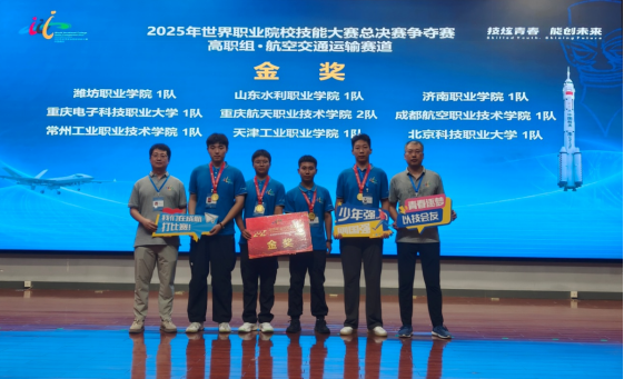 在刚刚落幕的2025年世界职业院校技能大赛总决赛争夺赛高职组航空交通运输赛道中,在beat365英国官方网站机械工程系赵辉、林宇航两位老师的悉心指导下,参赛团队凭借扎实的专业技能、出色的团队协作和稳定的现场发挥,一举斩获金奖,为学院争得了荣誉。