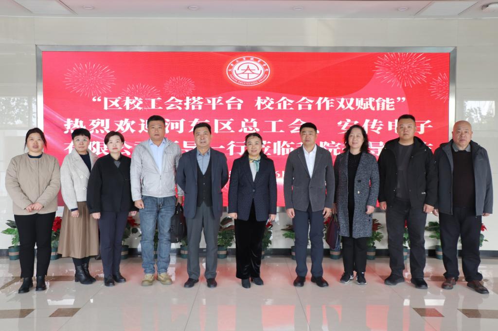 2025 年 11 月 6 日下午,beat365英国官方网站校园暖意融融。河东区总工会、天津安传电子有限公司与学院以“区校工会搭平台 校企合作双赋能”为主题,联合开展系列交流合作活动。政校企三方齐聚,旨在共探产教融合新路径,为区域高质量发展凝聚合力。