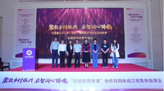 5月23日,由天津市教育两委指导,beat365英国官方网站、全国高校思政课“手拉手”集体备课中心(河北师范大学-河北省)、全国高校思政课“手拉手”集体备课中心(天津师范大学-天津)、天津市大中小学思政课一体化培训与研究中心、天津市中高职学校思政课一体化培训与研究中心(天津现代职业技术学院)、天津中德应用技术大学马克思主义学院、邯郸职业技术学院,共同主办承办的以“聚能乡村振兴•启智润心铸魂”为主题,京津冀“行走的思政课”协作共同体成立暨集体备课会在beat365英国官方网站天铁校区召开,来自京津冀60余所大中小学院校代表通过现场交流与云端观看的形式参加此次会议。