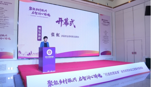 张虹局长代表涉县人民政府致辞,对莅临现场的领导、嘉宾表示热烈欢迎,介绍了涉县立足本地实际,在产业振兴、人才培育、文化传承、生态保护以及组织建设六大方面在乡村振兴工作中的积极实践,以及乡村振兴与“行走的思政课”深度融合的新路径。