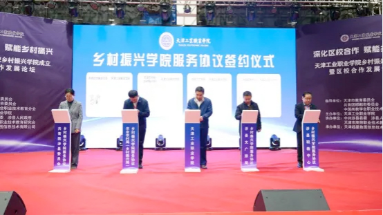 当天共青团涉县委员会、涉县农业农村局、涉县文化广电和旅游局、涉县职教中心、河东区天津铁厂街道和河东区天铁教育中心的领导基于相互信任与共赢发展的理念,分别与学院签订多项服务共建协议。内容涵盖将共建育训基地,开展农业科技创新合作,农村电商创新孵化、红色研学实践等。
