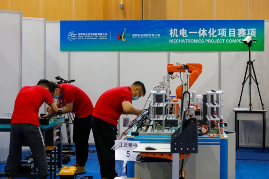 本次大赛是中国首次举办的面向世界职业院校的大赛,由教育部、国家发展和改革委员会等35家主办单位共同发起。机电一体化项目参赛选手以2021年全国职业院校技能大赛国赛获奖选手及鲁班工坊国内外建设院校为主角逐金、银、铜奖及优秀奖。其中有9支队伍是上一年度本赛项全国职业技能大赛的前九名,参赛选手实力强劲。竞赛采取“0.5+0.5”的“手拉手”中外混合编队形式完成竞赛。这种全新的组队与竞赛形式,促进世界技能人才互学、互鉴,为新时代培养更高素质技术技能人才提供了平台,助力后疫情时代全球经济发展。