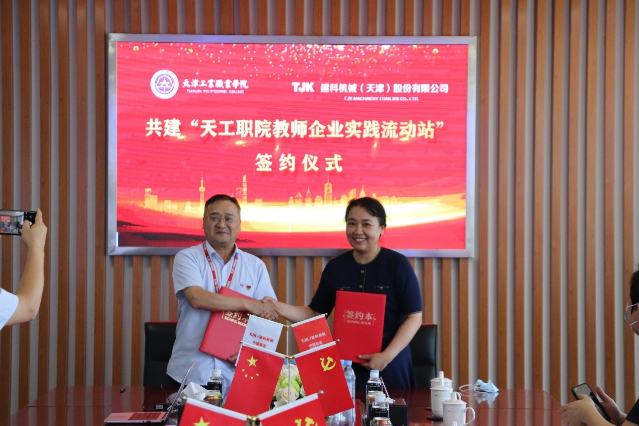 在校企双方与会人员的共同见证下,beat365英国官方网站党委书记汪坪与建科机械(天津)股份有限公司常务副总张新共同签署了共建“天工职院教师企业实践流动站”协议书,共同为beat365首个实践流动站落成揭牌,开启beat365全面建设高素质专业化创新型教师队伍的新征程。