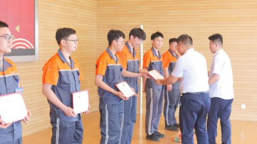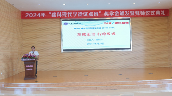 2024年5月28日上午9点,学院机械工程系第五批“建科现代学徒制试点班”奖学金颁发暨第六批拜师典礼仪式在建科机械(天津)股份有限公司隆重举行。学院方由院长孔维军带队出席,学院校企合作和对外交流办公室副主任梁国勇、机械工程系党支部书记、副主任李焱、机械工程系党支部副书记李志强、校企合作导师代表麻东升、就业工作辅导员刘铮随行;企业方由建科机械常务副总经理张新出席,人力资源行政部部长吝永红、生产管理部部长戴琳、电气管理部负责人胡海源、技术管理部负责人岳山刚、科技发展中心主任王丽坤及一线师傅和学员学徒等共计100余人参加。